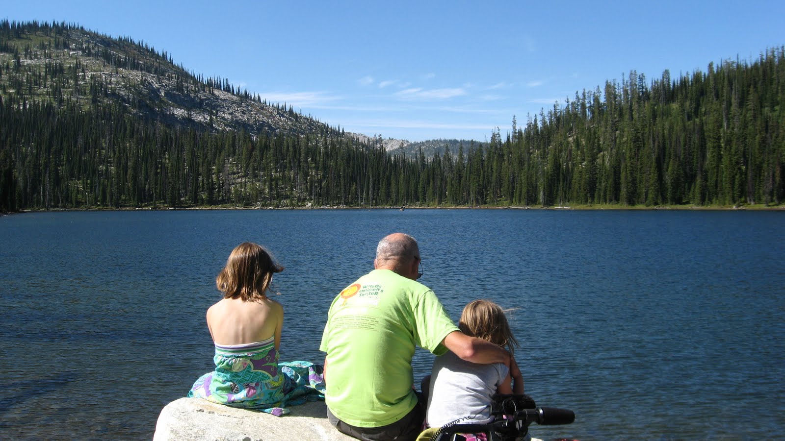 Bob and the girls looking out over one of the Twin Lakes at the start of our hike, not far from where we parked.